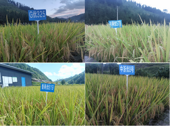 该示范基地以杂交稻超高产精确栽培技术为核心,通过合理提高种植密度,实现水稻生产技术的集成创新。现场测产结果显示,与当地传统种植模式下的华浙优210品种相比,香两优619、G优325、兴两优578、品香优秱珍、中浙优8号5个优质稻品种均实现显著增产,增幅在12.25%~23.74%之间。