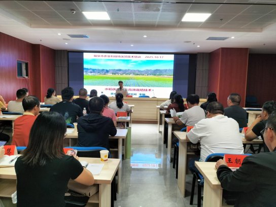 10月17日,我所水稻科技人员李敏研究员到黔南州福泉市开展水稻科技培训。此次培训会由福泉市农业农村局组织,李敏研究员以《水稻优质丰产高效栽培技术》为题进行了现场授课,主要授课内容包括优质高效水稻新品种选用、水稻高效育秧技术、水稻机械化插秧技术、水稻肥水管理技术、水稻病虫害绿色防控技术等。此次培训共有相关农技人员42人参加,通过培训有效提升了全市农技人员专业技能水平和实地指导水稻生产能力。